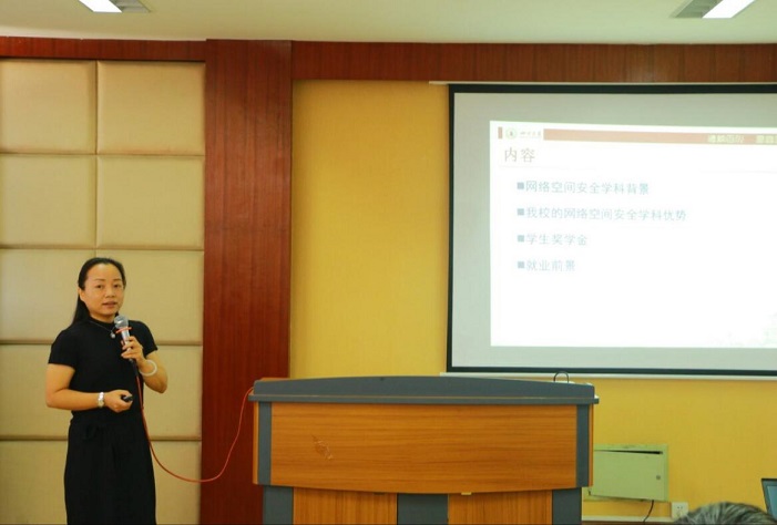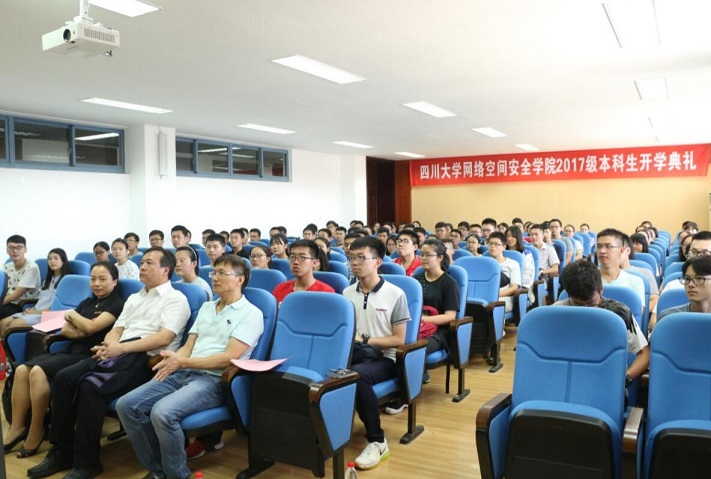 随后,常务副经理陈兴蜀教授以习近平总书记发表的重要讲话为切入口,引出当今世界网络空间安全人才的巨大缺口以及该专业发展的无限前景。并向同学们介绍了公司在政府与社会的支持下拥有丰富的资源,将会为同学们提供良好的机遇。陈兴蜀老师最后向新生提出了几点希望,鼓励同学们在具有扎实的专业基础上更要具备家国情怀,敢于与网络黑产对抗,真正成为对国家和社会有用的栋梁之才。