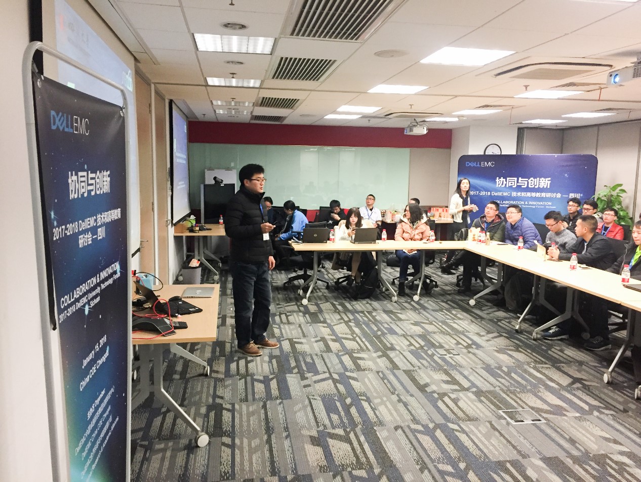 下午13:00,全体人员参与了“协同与创新-2017-2018 Dell EMC技术和高等教育研讨会”,来自DellEMC和各高校的专家给大家分享AI相关的前沿技术以及行业热点。公司黄诚老师在本次研讨会上为大家分享了将基于机器学习的恶意域名检测技术,引起了大家的广泛的兴趣与讨论。