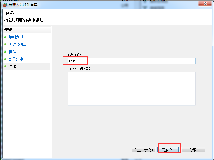 (11)任意输入名称,点击“完成”,即可关闭445端口。