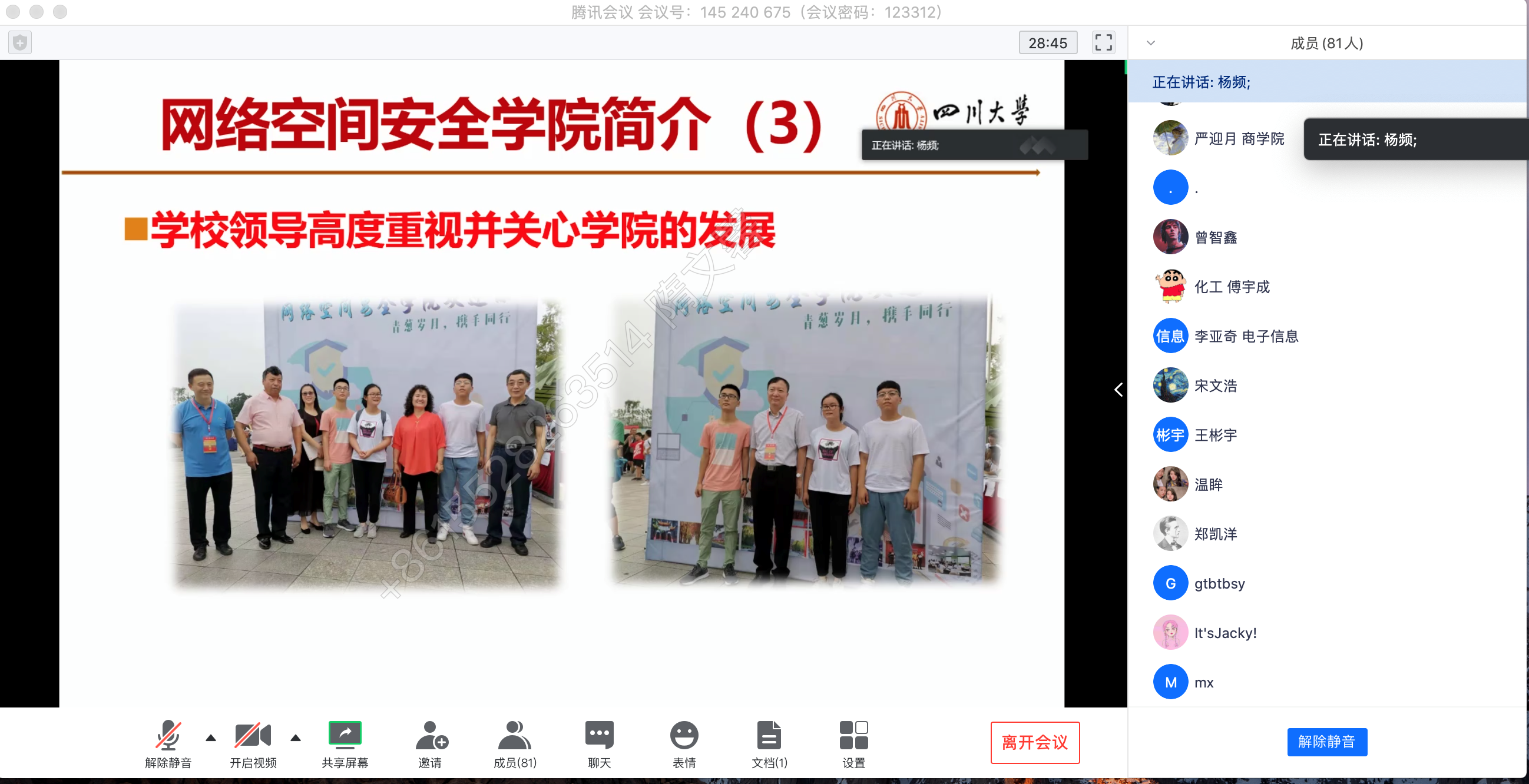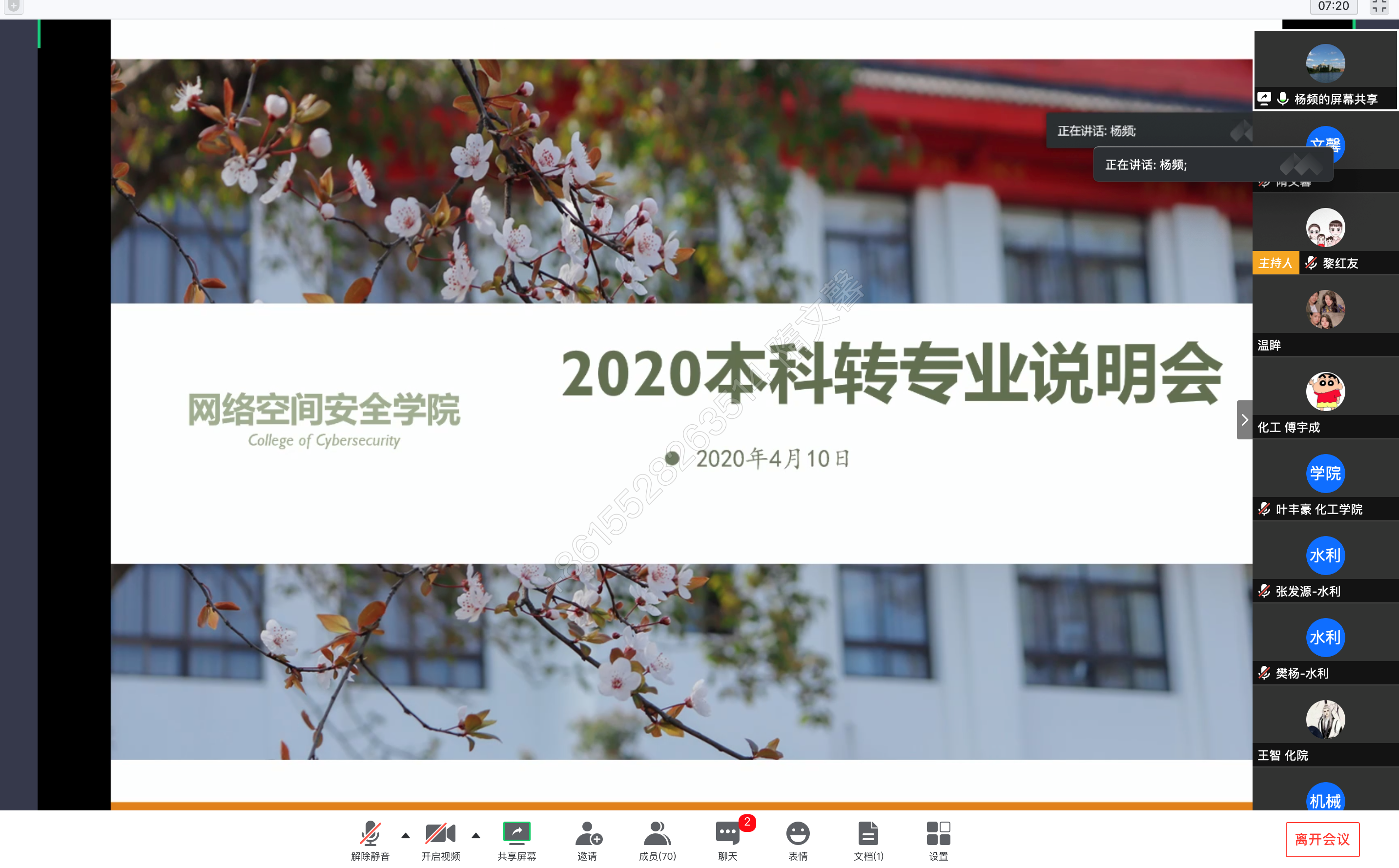 为了让有转专业意愿的同学深入了解网络空间安全专业,保障公司转专业员工交接工作的顺利完成,4月11日上午,bv伟德国际1946官网通过在线会议的方式召开2019年度转专业宣讲会,公司直属支部书记兼副经理秦燕、副经理杨频、员工科科长黎红友、教务科科长方智阳等老师和80余位意愿转专业的同学参加了本次会议。