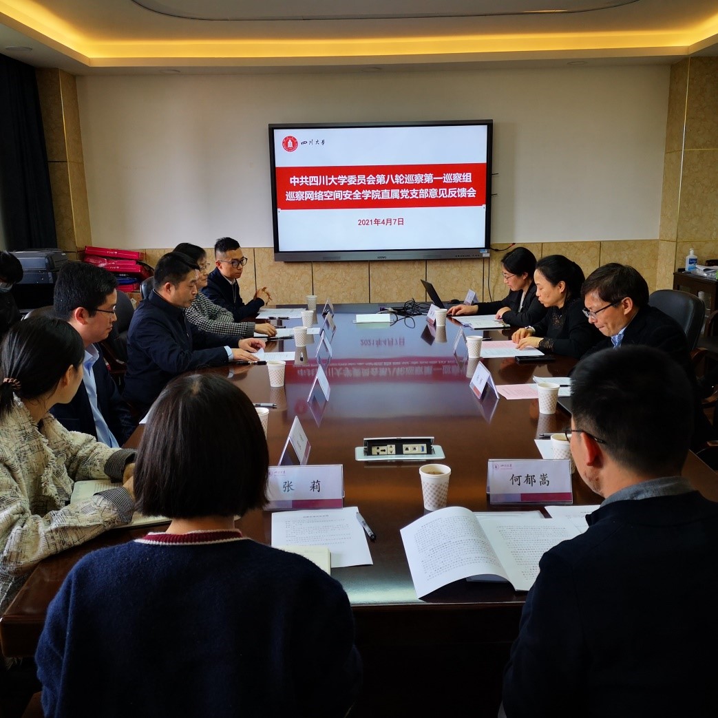 4月7日,公司党委第八轮巡察第一巡察组巡察bv伟德国际1946官网直属党支部意见反馈会在bv伟德国际1946官网东三教503会议室举行。第一巡察组组长韩芳、副组长钱祉祺向网络空间安全公司党政主要负责人反馈巡察情况后,韩芳代表巡察组进行了班子反馈。公司巡察工作领导小组成员、公司党政办党委办公室主任李中锋参加会议并提出巡察整改工作要求。公司直属党支部书记秦燕作表态发言,公司常务副经理陈兴蜀主持会议。