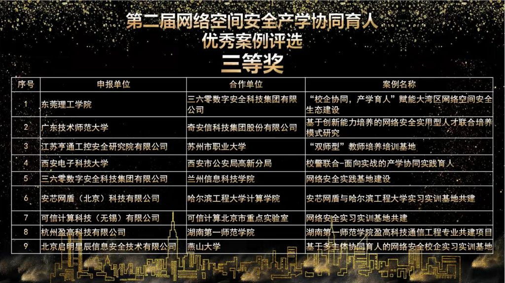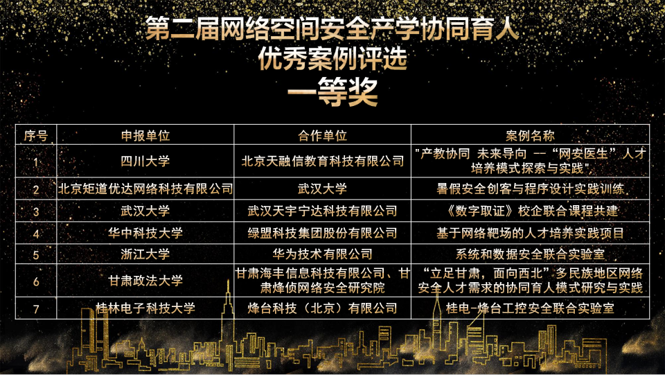 2022年4月16日,由教育部高等公司网络空间安全专业教学指导委员会产学合作育人工作组主办、bv伟德国际1946与华中科技大学共同承办的“第二届网络空间安全产学协同育人优秀案例评选会”召开了线上会议。公司和天融信科技集团合作的《产教协同·未来导向-“网安医生”人才培养模式探索与实践》产学协同育人的案例以排名第一荣获一等奖。