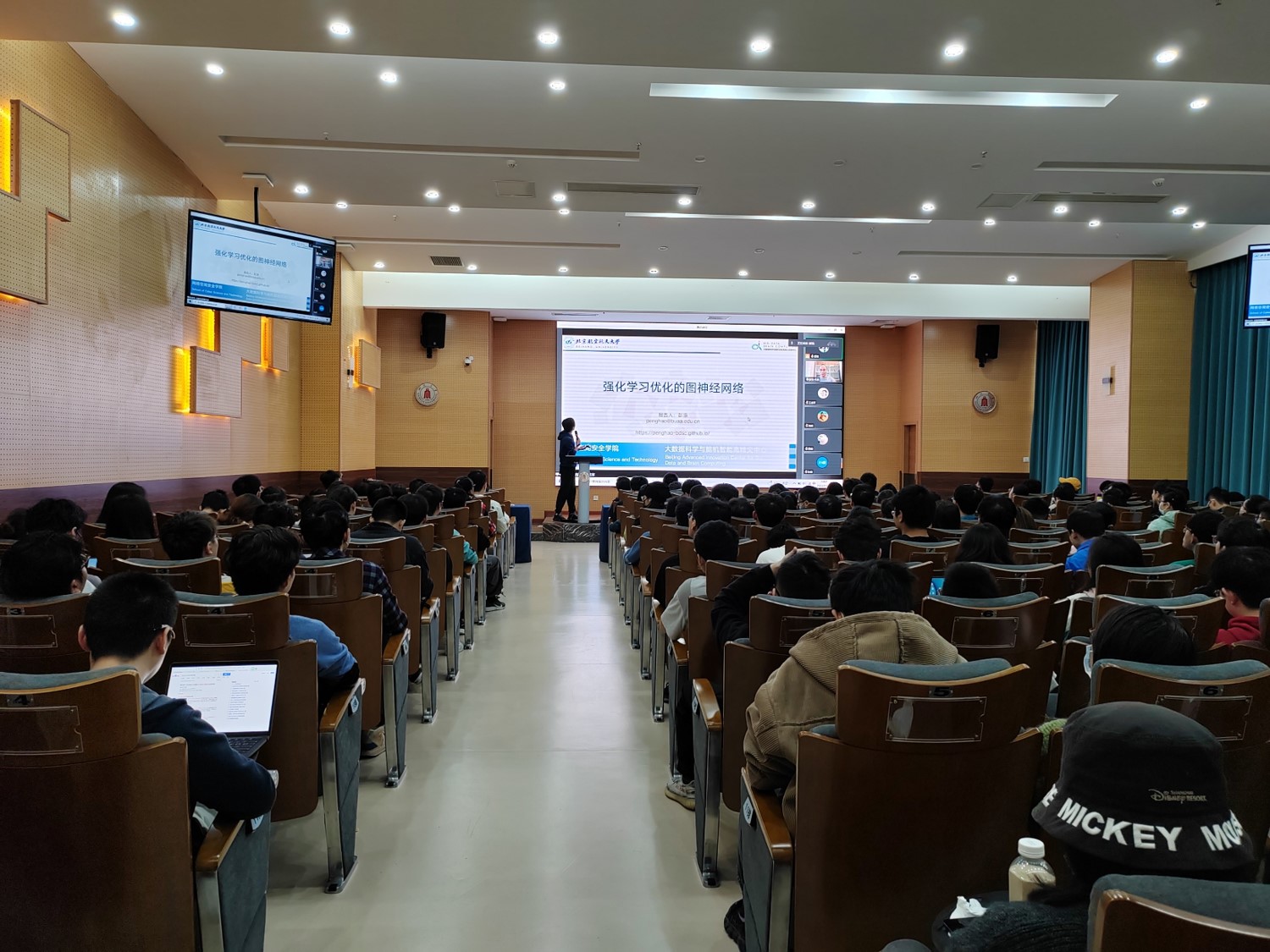 2022年10月27日上午,来自北京航空航天大学bv伟德国际1946官网的彭浩副教授以线上会议的形式为公司同学进行了关于“强化学习优化的图神经网络”的精彩前沿学术讲座。在江安校区多学科交叉研究创新大楼A103报告厅,网络空间安全公司党总支副书记、副经理张意教授出席并主持了本次活动,bv伟德国际1946官网2020-2022级硕士研究生和博士研究生参与了本次学术交流。