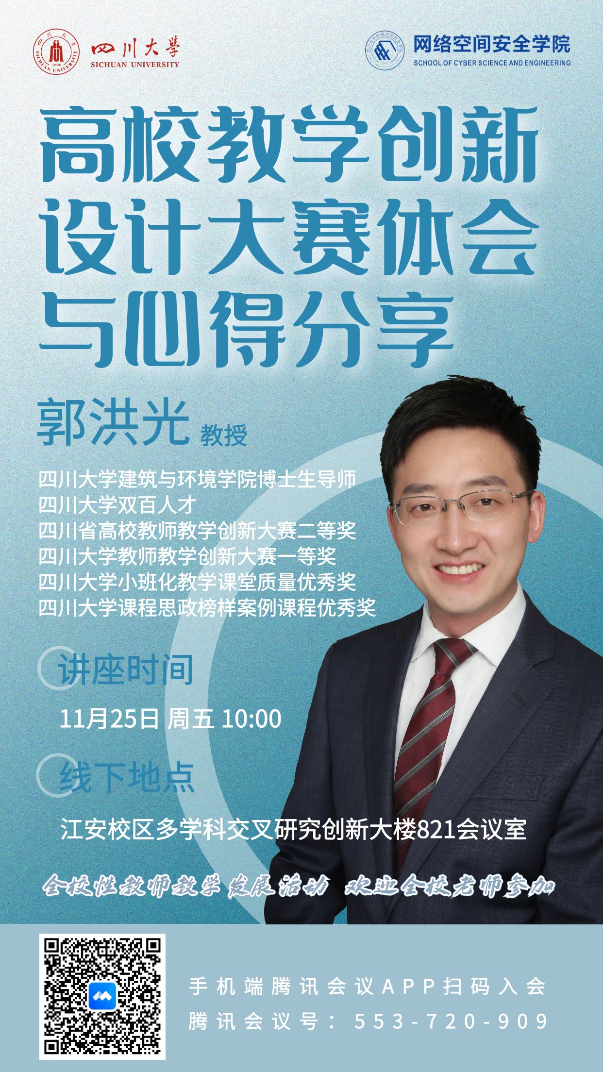 11月25日,公司在江安校区多学科交叉研究创新大楼821会议室成功开展bv伟德国际1946官网教师教学发展活动——预热第六届教师教学创新大赛,公司邀请到了建筑与环境公司郭洪光教授作为主讲嘉宾,以“高校教师教学创新大赛体会与心得分享”为主题,带领老师们深入了解教师教学创新大赛的备赛要求和参赛经验。活动由公司副经理杨频主持,公司的30多位老师在线上线下同时参加了此次活动。