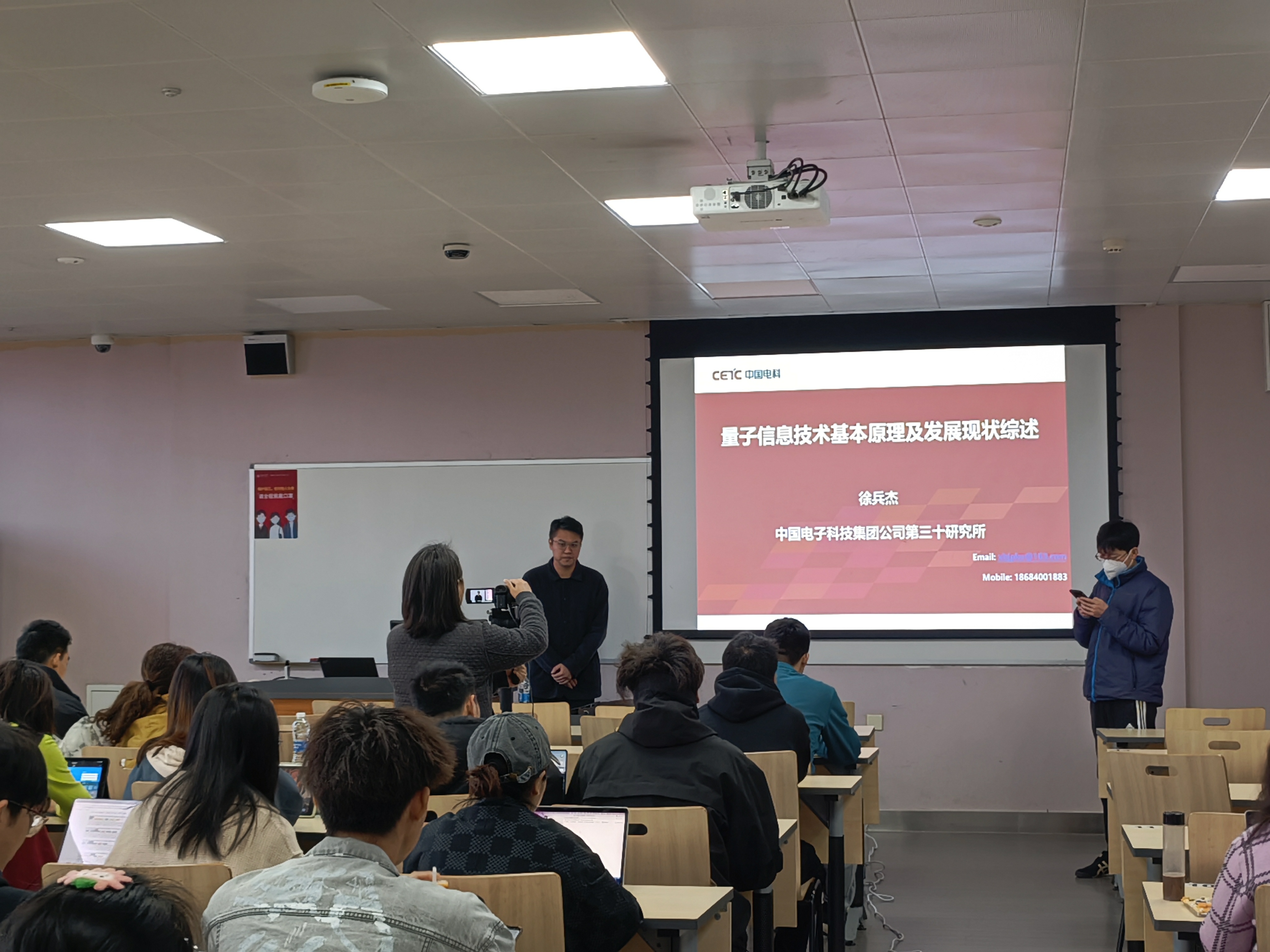 2023年3月13日上午,中国电子科技集团公司首席专家、三十所量子保密通信领域总师徐兵杰研究员为公司电子信息专业硕博士生开展了题为“量子信息技术概述”的专题讲座。本次讲座由网络空间安全公司党总支副书记兼副经理张意教授主持。