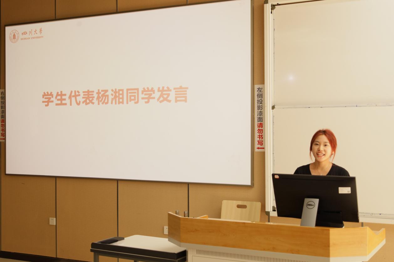 2021级优秀员工代表杨湘同学向大家分享了自己的学习、科研经历,希望新同学扎实专业知识、提高动手能力。