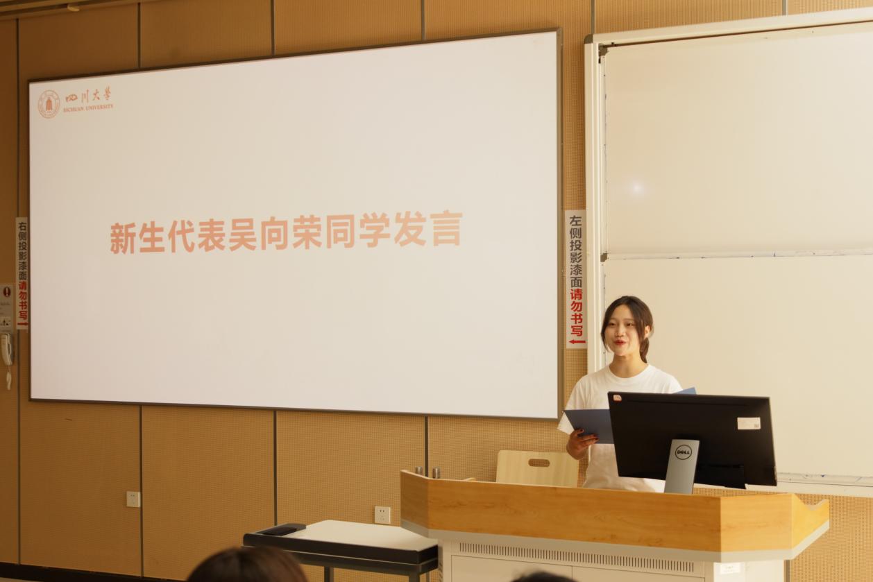 2024级新生代表吴向荣同学表达了对未来的憧憬,愿与新同学一起乘理想之马,挥鞭启程。