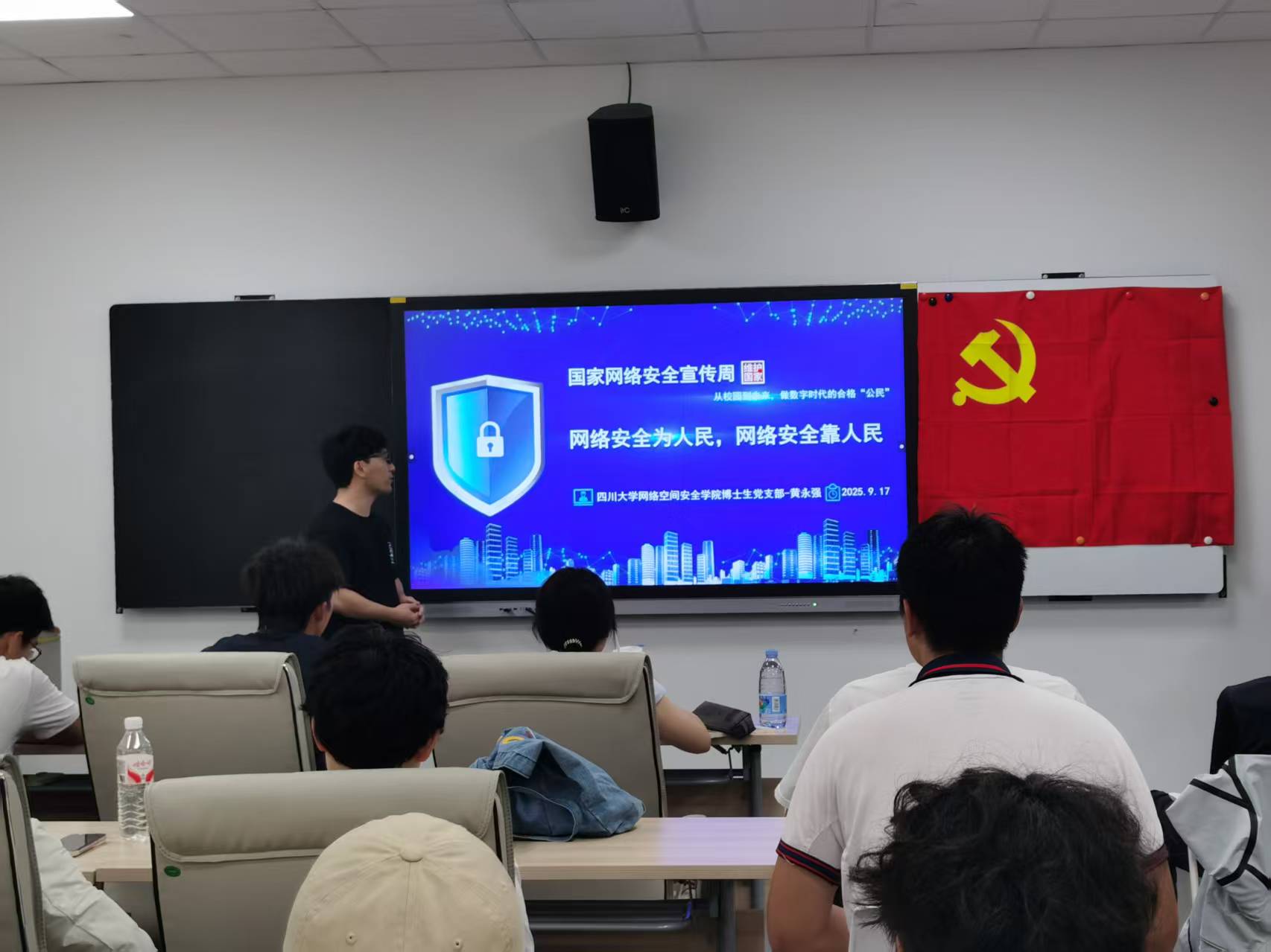本次活动围绕国家网络安全宣传周背景、网络安全法律法规及个人防护措施等内容展开。bv伟德国际1946官网博士生党支部黄永强博士结合实际案例,生动讲解了网络安全的重要性,普及了防诈骗、防信息泄露等实用知识。