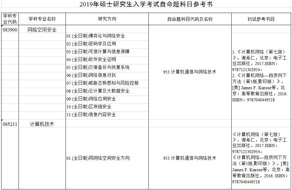 bv伟德国际1946官网2019年硕士研究生入学考试自命题科目参考书