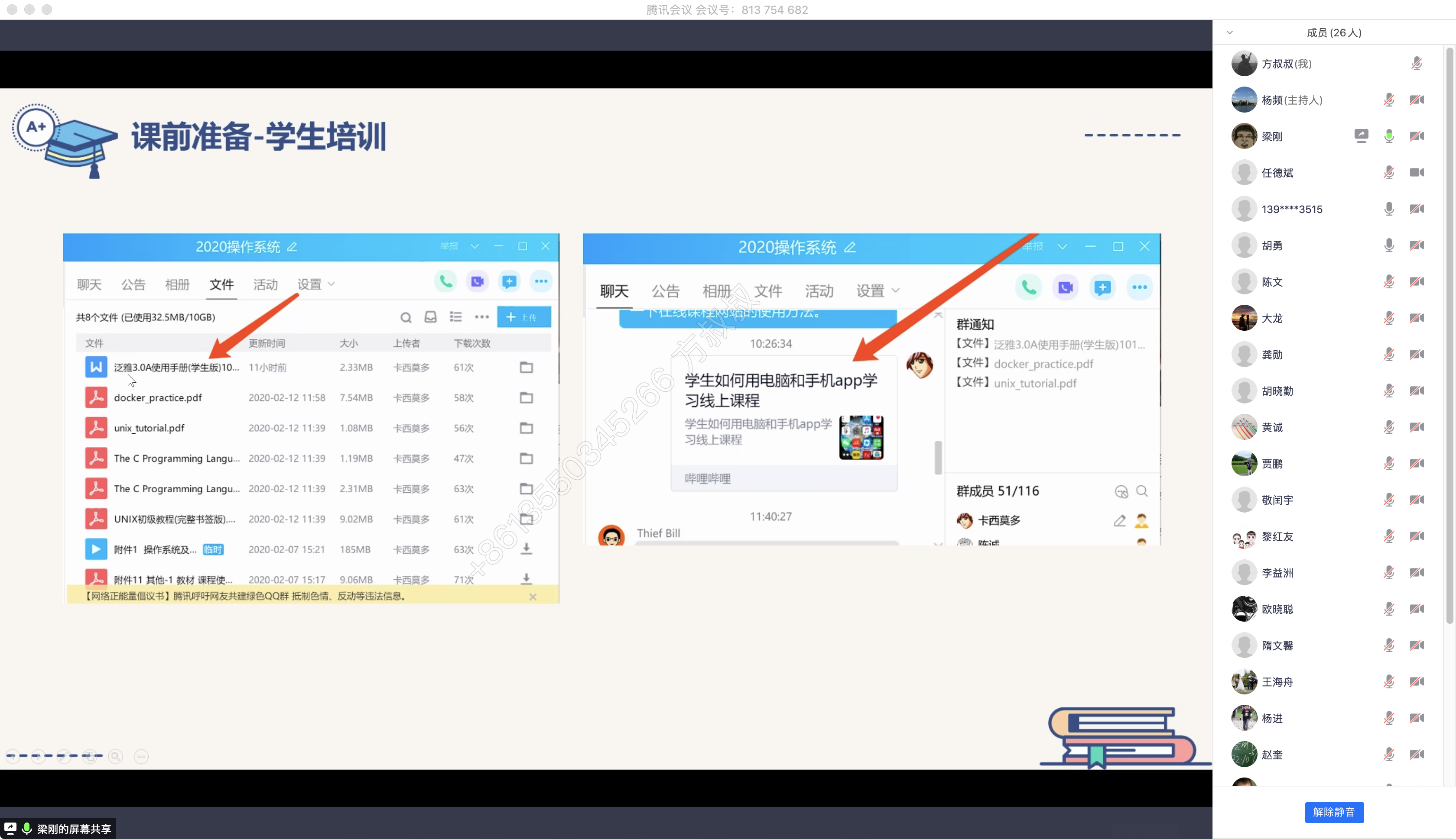 参加本次在线会议的人员为公司全体教师。会议由公司副经理杨频教授主持,为了让公司教师能更好的利用公司教务处提供的超星学习通、爱课堂、雨课堂等教学平台开展下学期的在线教学工作。本次会议邀请了梁刚、王海舟、赵辉、黄诚四位老师交流即将开始的在线教学思路和分享相关教学平台的使用经验。