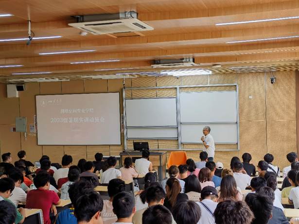 首先,杨经理为同学们耐心地讲解“为什么要实训”,从网安的创新实践能力培养体系讲起,大一至大三每年的实训课是网安实践教学的重要一环,也是非常有意义的,对将来的深造或就业都大有裨益。杨经理还对同学们关心的本次实训的相关安排和具体要求做了一一解答。