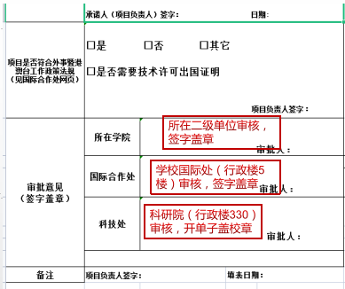 所示流程,完成审批后,方能在与境外方的合作协议上盖章。