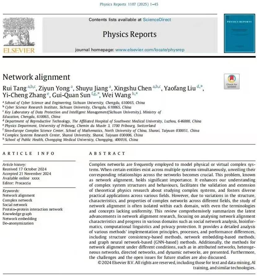 近日,公司助理研究员唐瑞与西南医科大学、重庆医科大学合作,在国际期刊《Physics Reports》上发表题为“Network alignment”的长篇综述论文。唐瑞为论文第一作者,bv伟德国际1946官网为第一单位。