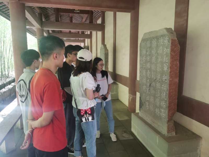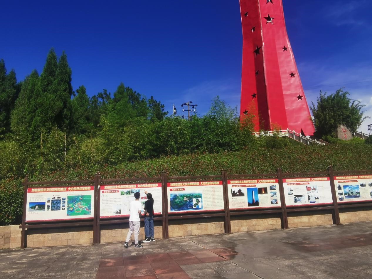 8月25日下午,实践团队冒着烈阳到达了红军文化园。团队成员首先参观了室内的壁画和革命时期的文物。随后团队成员来到了室外,参观了一系列革命时期的石碑,上面铭刻着当时的宣传标语。游览完红军文化园后,队员们对于红军长征有了更加全面的认识,他们身处艰苦的环境,却依旧艰苦奋斗,为了解放人民甘愿牺牲的精神深深地打动了队员们。