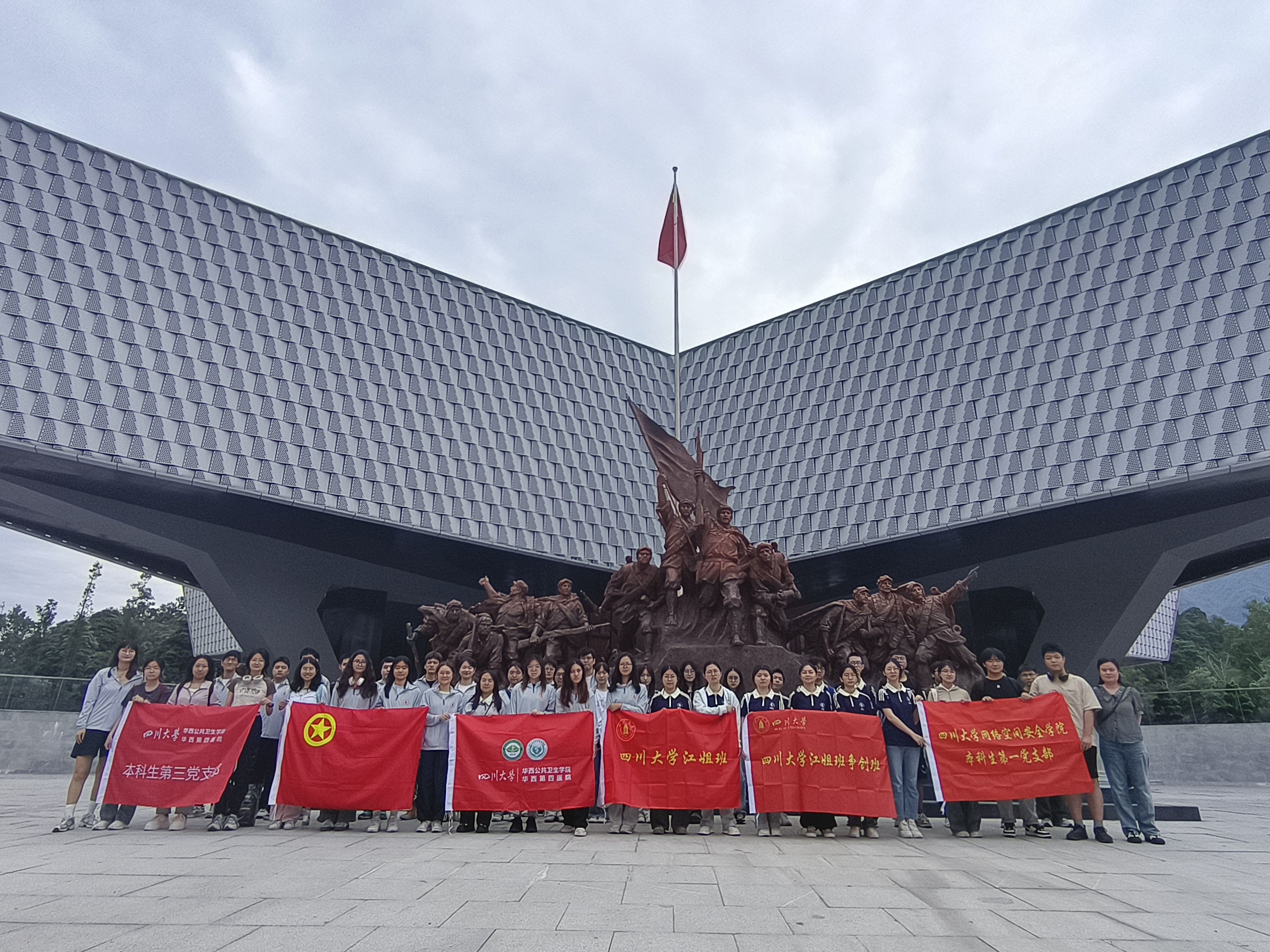 为深入学习贯彻习近平新时代中国特色社会主义思想,赓续红色血脉,厚植爱国主义情怀,2025年5月17日,bv伟德国际1946官网本科生第一党支部、江姐班联合华西公共卫生公司江姐班以及生物医生工程公司江姐争创班,组织师生前往邛崃红军长征纪念馆开展“追寻红色足迹,传承长征精神”主题党日活动。
