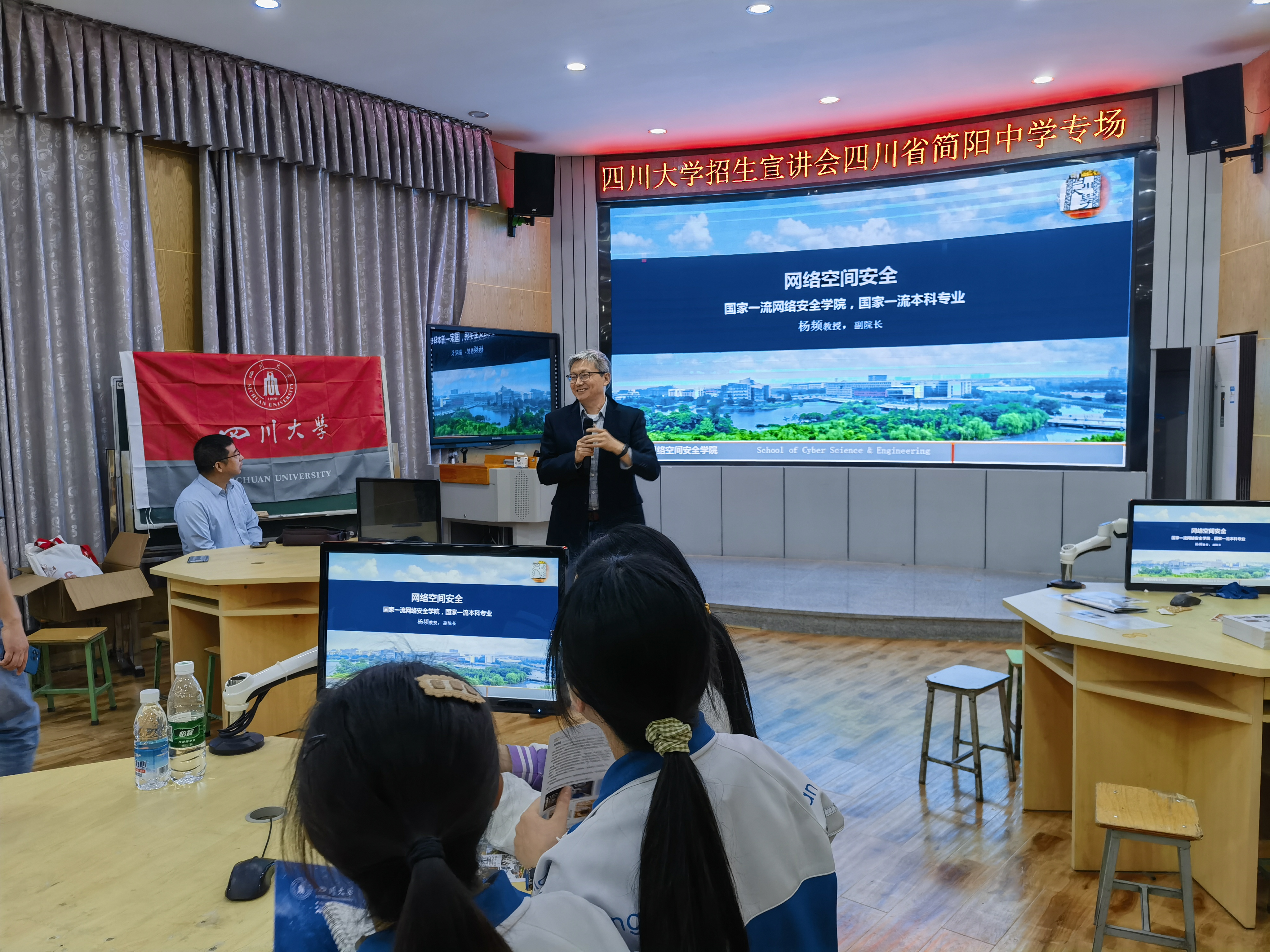 最后,bv伟德国际1946官网杨频副经理向同学们推介了网络空间安全专业,网络空间安全专业已经是社会认知较高的热门专业,职业发展前景好,鼓励愿意学习信息学科的同学们将来有机会到川大学习。