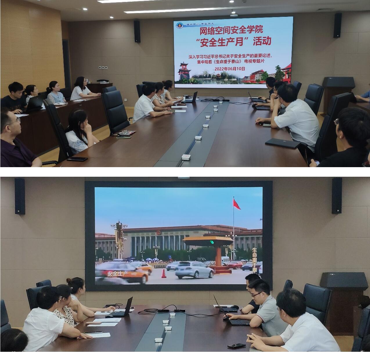 (1)6月10日下午,组织全院老师深入学习贯彻习近平总书记关于安全生产重要论述,集中学习《生命重于泰山》电视专题片,切实树立安全发展理念;深入扎实排查化解风险,统筹抓好各项安全防范措施落细落实,杜绝盲区漏洞,有效防范遏制重特大事故;紧紧围绕安全生产专项整治三年行动集中攻坚任务,总结经验做法,推广制度成果,加强问题隐患警示曝光,切实筑牢安全生产防线。